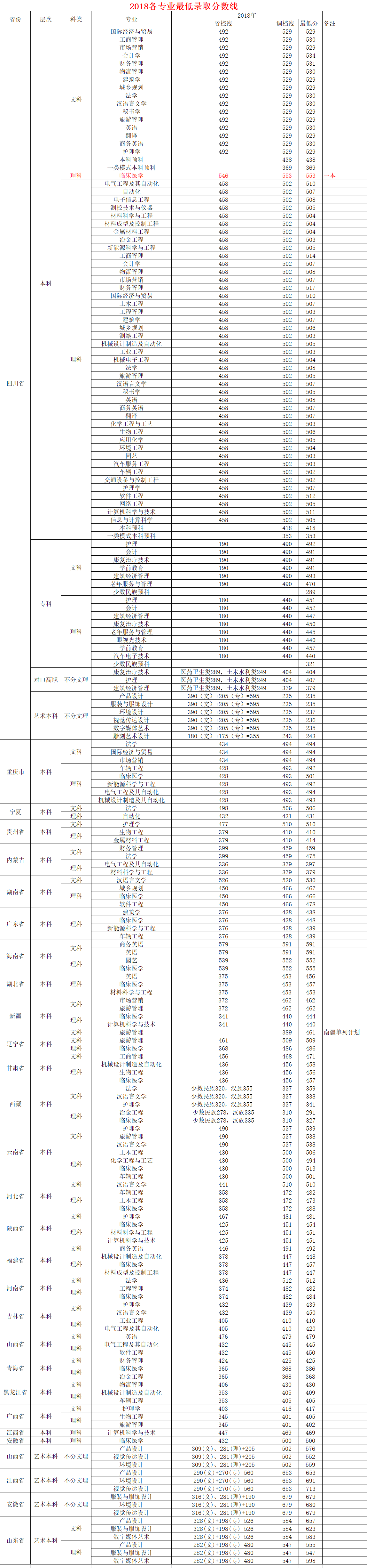 攀枝花学院2018年省内、省外各专业最低分