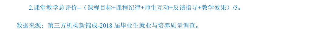 总体满意度评价:2018届毕业生对学校教师评价的综合得分为3.96分,处于“比较满意”水平;各学历毕业生对母校任课教师的满意度均处于98.00%以上,均值均在3.90分以上(5分制),处于“比较满意”水平。