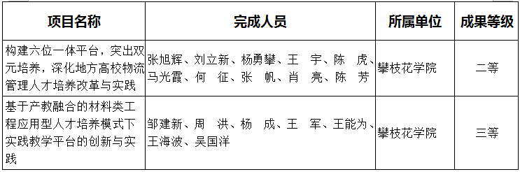 4月2日,四川省人民政府发布了《关于公布四川省第八届高等教育教学成果奖和四川省第六届普通教育教学成果奖的通知》(川府函〔2018〕64号),我校张旭辉教授及其团队研究的《构建六位一体平台,突出双元培养,深化地方高校物流管理人才培养改革与实践》荣获省级教学成果奖二等奖,邹建新教授及其团队研究的《基于产教融合的材料类工程应用型人才培养模式下实践教学平台的创新与实践》荣获省级教学成果奖三等奖。