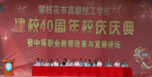 四十年弦歌不辍,薪火相传;四十载栉风沐雨,桃李芬芳。6月2日上午,攀枝花市高级技工学校40周年校庆庆典暨中等职业教育改革与发展论坛在我校西苑足球场隆重举行。各兄弟院校、校企合作企业相关负责人,攀枝花市高级技工学校历任领导、校友代表及在校师生600余人参加活动。