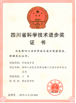 4月21日上午,四川省科学技术奖励大会公布了2019年度四川省科技进步奖获奖名单。我校教师黄平作为第一完成人的项目《特种工业乳化炸药关键工艺技术的开发与应用》和我校作为第一完成单位的项目《新型Ti-Al-V-Fe-O低成本高强度钛合金的研制及其板材加工关键技术》获得科技进步类三等奖。