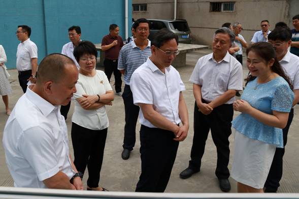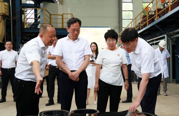 党委书记肖立军向李江厅长介绍实验室研制的钒钛产品